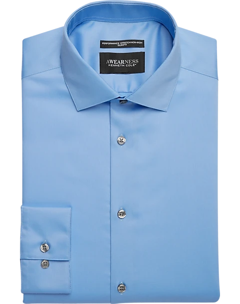 Tailored from a comfortable cotton blend with a bit of stretch, this dress shirt from Awearness Kenneth Cole is made to perform. Comfortable and in a slim fit, this dress shirt has a spread collar and smooth, no pocket front. Choose from a variety of solid colors to rotate throughout your work week. Slim Fit is slim and tapered across the chest, shoulders, armholes, waist and sleeves without compromising on comfort. Recommended for more triangle body types (broad shoulder and chest, narrow waist and hips).