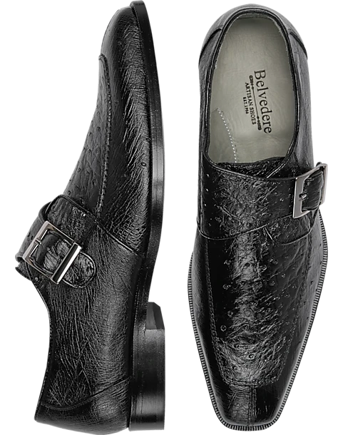 A sophisticated mock strap secures the genuine ostrich upper of these stylish dress shoes from Belvedere. Finely stitched with a split moc toe, they slip on easily with leather linings and are comfy with a leather sole.