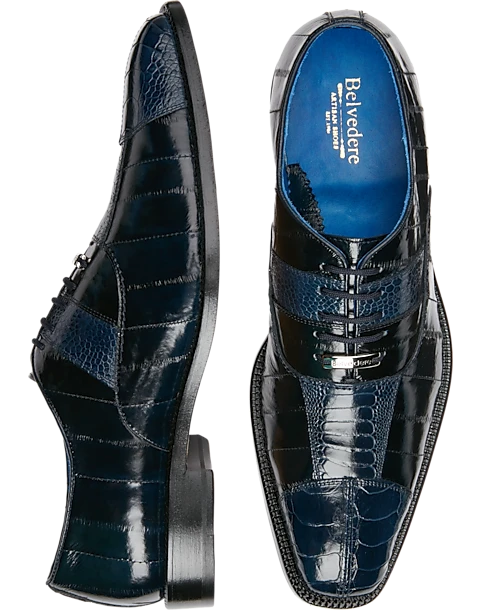 Step out on the town in these topnotch oxfords from Belvedere. Crafted with fine ostrich and eel leather, these luxe lace ups feature a split cap toe, cushioned footbed, and leather sole for premium comfort.