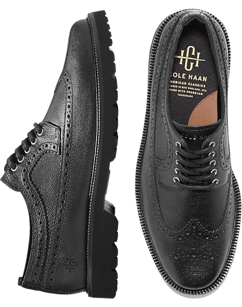 - Leather upper|Round toe|Lace up|Storm bead welt|Brogue detailing|Segmented rubber sole|EVA outsole is soft yet responsive|Cole Haan is a global performance lifestyle brand with a 9 year heritage. Cole Haan infuses its products with time honored craftsmanship and modern innovation. Customers can wear their footwear from work to workout to weekend.|
