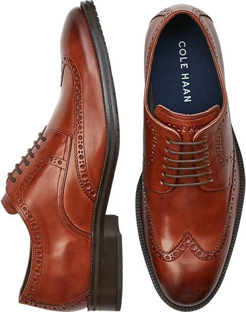 - Full-grain oiled leather upper|Wingtip broguing|Lace up|Leather lined|Extra layer of EVA midsole for comfort and support|Rubber outsole for added durability|Cole Haan is a global performance lifestyle brand with a 90 year heritage. Cole Haan infuses its products with time honored craftsmanship and modern innovation. Customers can wear their footwear from work to workout to weekend.|