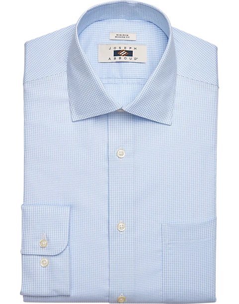 A perennial favorite, gingham brings a fresh, inspired perspective to this dress shirt from Joseph Abboud. It’s expertly tailored from crisp cotton in a light blue hue. Modern Fit is close-fitting without being constricting through the chest, body, and sleeve. Recommended for more rectangular body types (shoulders aligned with hips, with the waist slightly smaller).