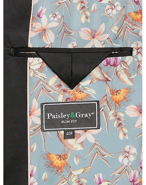 - Polyester Blend|One button|Shawl lapel|Side vents|Coordinating pieces sold separately|Matching Pant: TMW_3XJD_3XJE_25|Slim Fit|Paisley & Gray|