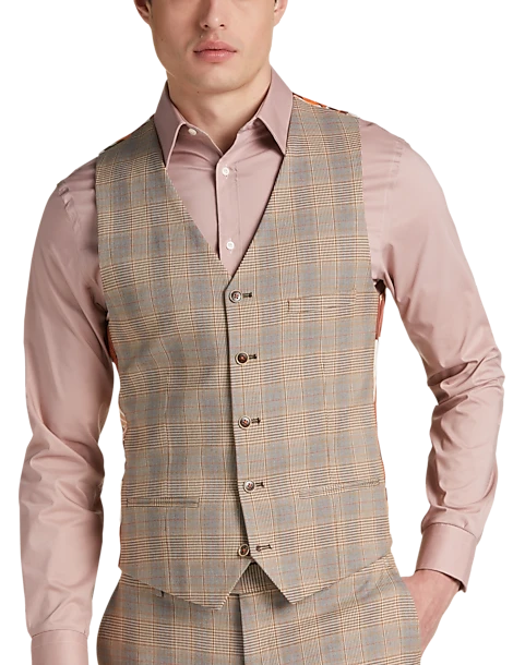 Add that finishing touch with a vest that features a plaid pattern in tan and gray. It’s part of Suit Separates which lets you choose your coat, pants and vest sizes separately for your best fit ever.