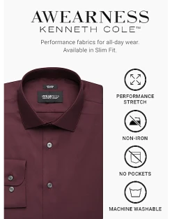 Awearness Kenneth Cole Slim Fit Performance Stretch Dress Shirt, Burgundy