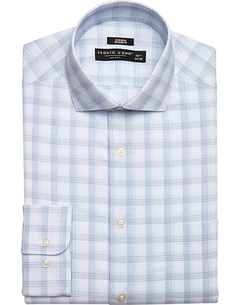 Made of soft, non-iron cotton, this spread-collar dress shirt has a fitted silhouette and non-breakable buttons. The non-iron treatment defies wrinkles for a crisp, flawless look all day. Modern Fit is close-fitting without being constricting through the chest, body, and sleeve. Recommended for more rectangular body types (shoulders aligned with hips, with the waist slightly smaller).