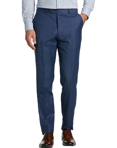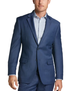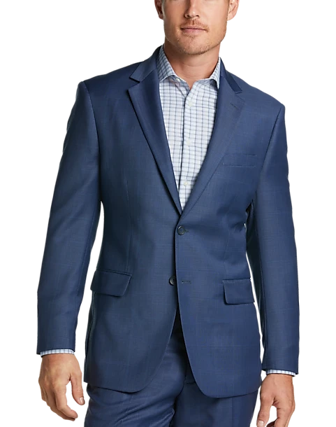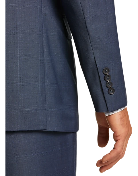 A classic look. This fine blue plaid suit features a subtle plaid pattern in a rich, vibrant blue.