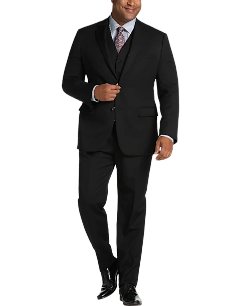 In a classic black, this suit separates coat has a notch lapel and two-button closure. Pair it with its matching vest and slacks (sold separately) for a perfectly coordinated look in just the sizes you need.