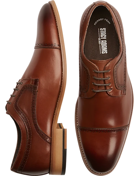 A versatile shoe that will spend little time in your closet, these cap-toe oxfords look sharp in supple leather with fine detailing and brogued embellishments. They feature elegant lines of perfing, a sleek profile, and modern stacked heel. To make it feel as good as it looks, it also has a plush memory foam insole for long-term, comfortable wear.